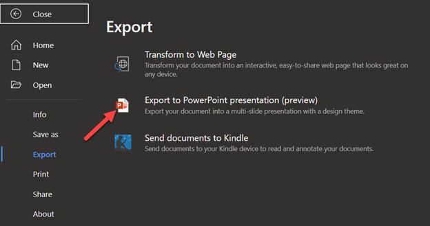 - Select File > Export to PowerPoint.