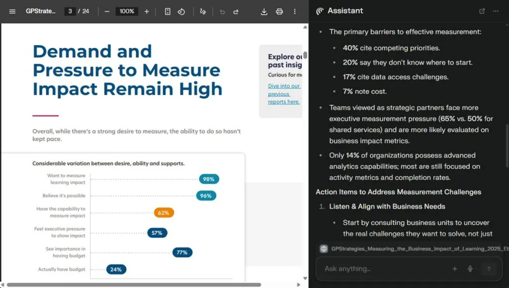 These features can make L&D work more efficiently and align with what other AI tools promise, but their seamless availability within the browser is what truly stands out.