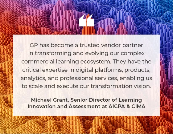 AICPA & CIMA needed to make their course content more discoverable and deliver more value for their 600,000 members. GP Strategies and LTG implemented a new learning ecosystem with an AI-powered solution that optimized the learning content library of about 3,000 courses and brought disparate systems together. Ultimately, the solution reclaimed $2.5M per year and delivered an improved learner and administrator experience.