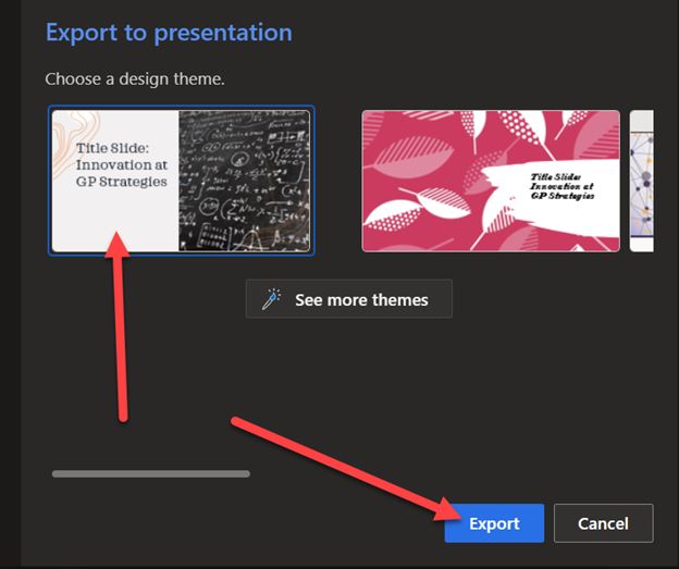 - Select File > Export to PowerPoint.