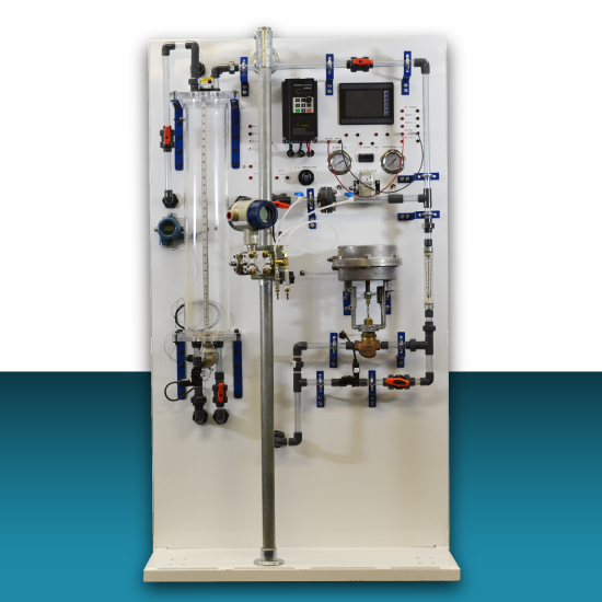 Produced to highlight the fundamentals of process instrumentation and process controls, this station features a process system that uses water to maintain either a tank level or a flow rate based on the instrumentation being employed. It’s used to demonstrate fundamentals emphasizing proportional, integral, and derivative (PID) action using an industrial-rated human-machine interface (HMI) and PLC.