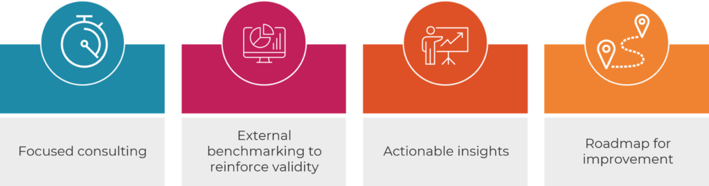 - Obtain a practical, actionable plan for immediate priorities and a roadmap to maturity that both support your organization’s strategic vision.